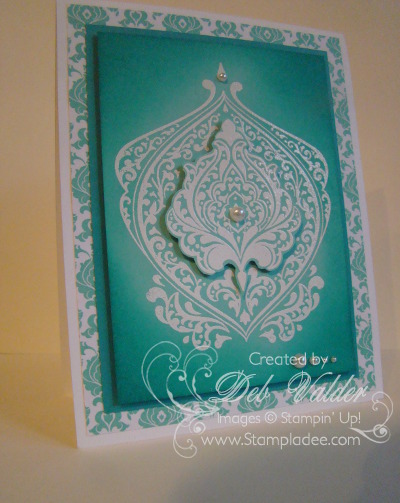 I'm just loving the Eastern Elegance Suite (a Suite is a collection of our Stampin' Up! product that all coordinates). This card is part of my Eastern Elegance card class that I will be holding tomorrow. I really like the way it came out. What do you think?