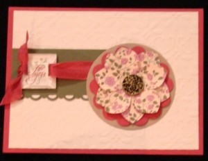 This is my busiest month of the year! I love March! I've started my Continuing Education Stamping Classes in four different school districts; I'm doing my regular clubs; my regular monthly classes, workshops, my Stamp Camp and Demo Get Together. This year I'm also doing a fundraiser and and a CSEA Event which I'm reeeeeally excited about. Busy Busy but lots of fun! I just hope the weather holds out – we've had more snow in January and February than we've ever had in all the years they have been keeping weather charts and guess what it's doing right now???? argh….