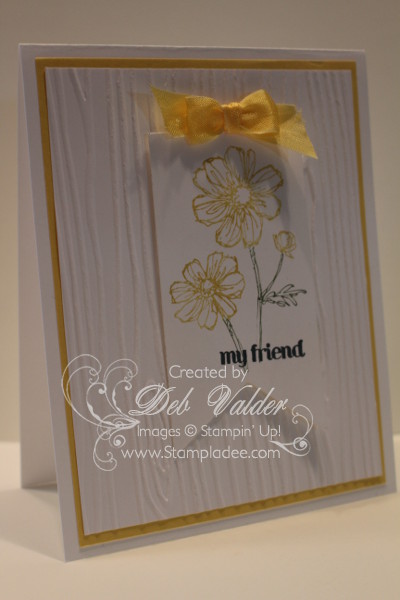- Adhere the Daffodil Delight to the Whisper White card base.