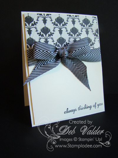 Today's card is very simple and just a great card to go to if you need one in a hurry!  I love clean and simple.  Today with a rush rush world…you need to have things simplified for you but still have that elegant quality.  I love Stampin' Up!'s quality.  It's one of the reasons I started stamping with them 14 years ago.  So today is clean, simple, elegant with quality product.