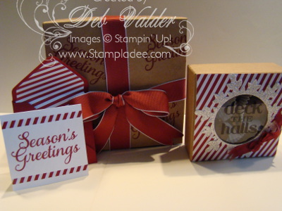 with this bundle you get the Stamp a Tag Kit, Extra Large Gift Boxes and you get 10 yards of Cherry Cobbler 1" Stitched Edge Grosgrain Ribbon