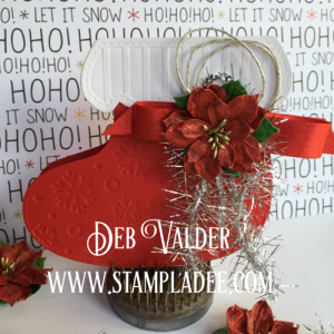Gift card holders made with Fun Stampers Journey and Deb Valder. 50% off Chubby Stocking today only. I made them into gift card holders. For the Elf Shoe I used the Chubby Witch Boot.