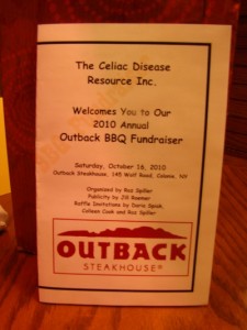 After the class, we went to a fundraiser for our local Celiac Support Group. It was held at the Outback Steakhouse in Colonie.