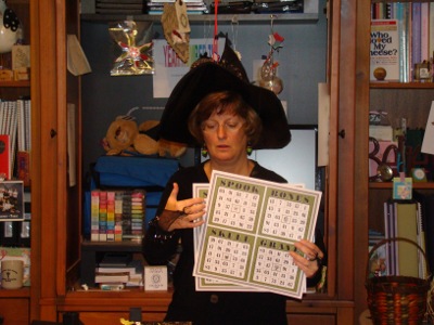 I'm all dressed up (do you like the hat) explaining the Spooky Bingo game that comes in the Halloween paper in our Holiday Mini Catalog. I was playing Halloween Music, my favorite was "The Monster Mash"!