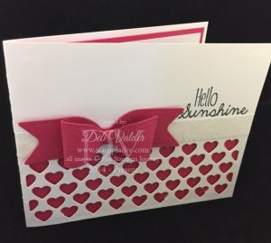 Well today’s ice storm left us without power for a while! Didn’t stop me, I stamped by candle light! That was fun! Give it a try. Today’s card uses our NEW Heart Strip Die. I told you about the new strip dies in the Bloom this Way Mini Catalog.