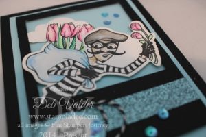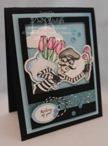 Now for today’s card, I’m going to showcase the card I did with my team. It’s the card that I did for the swap using the Stamp Set called Love Bandit…